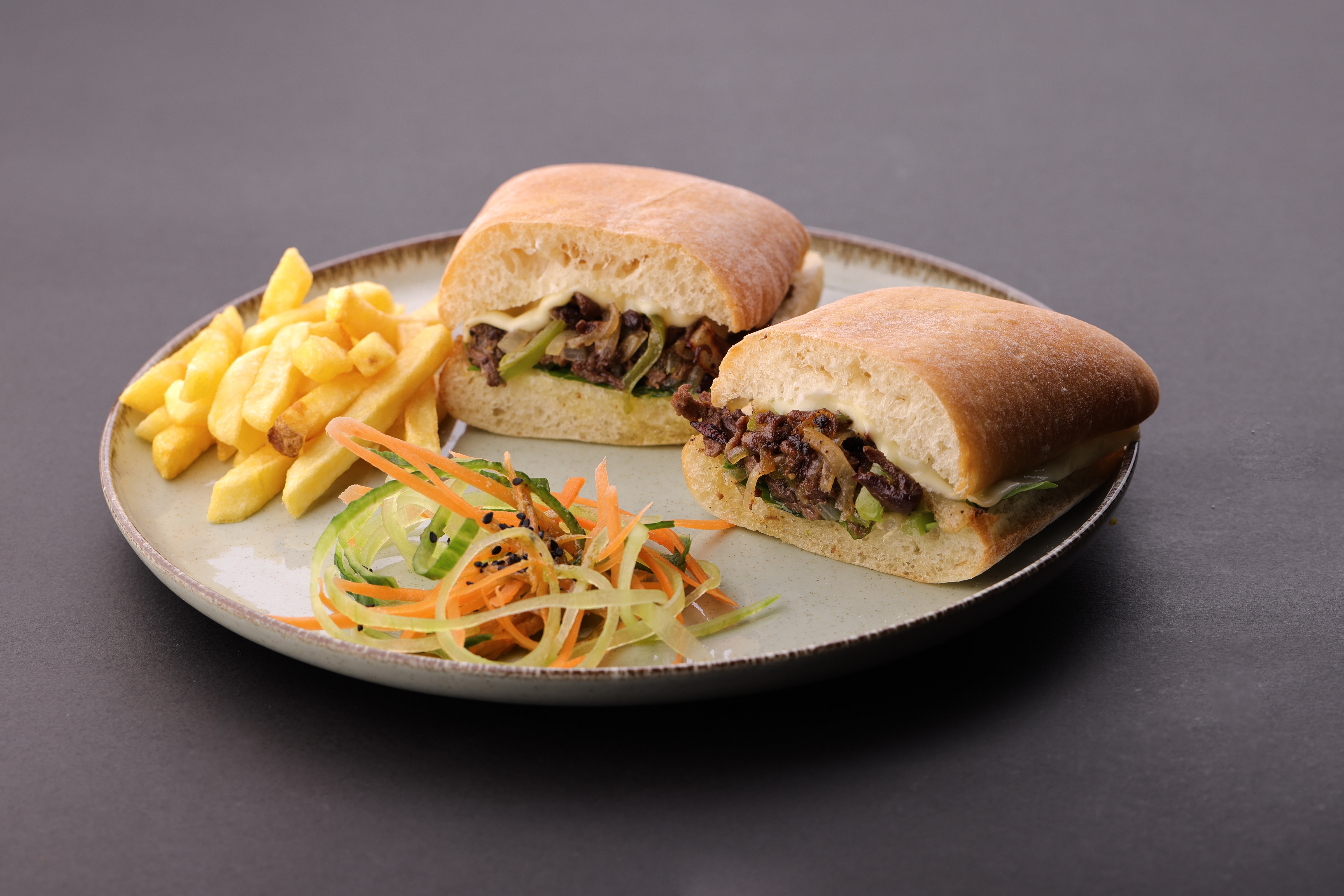 120g Marinated Beef Fillet – Onions and Bell Peppers – Cheddar Cheese – Mayonnaise – Chapata bread